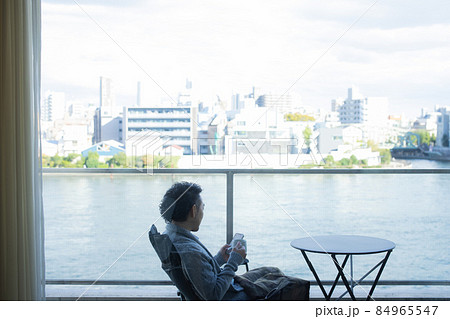 窓から外を眺める髭の男性 ライフスタイルやセカンドライフ、セミリタイアのイメージ