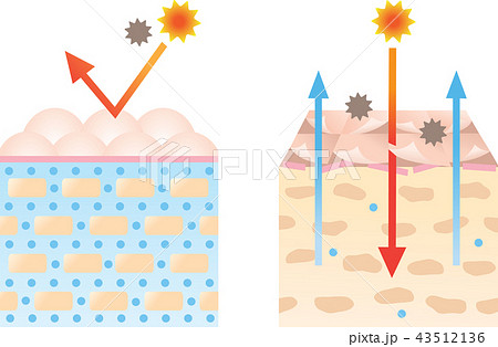 健康な肌と乾燥肌を比較した肌の断面図、イラスト