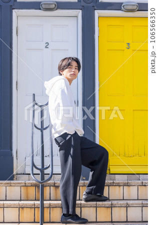 かっこいい男性のストリートスナップ かっこいい 若い 男性 明るい ポートレート
