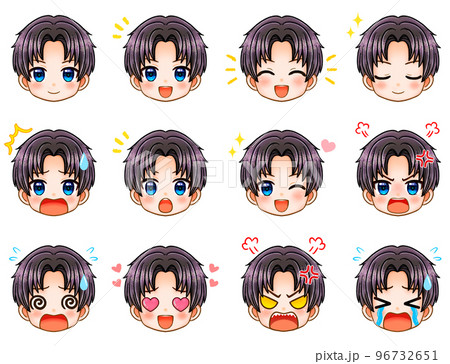 男性のちびキャラ顔アイコンイラスト素材セット
