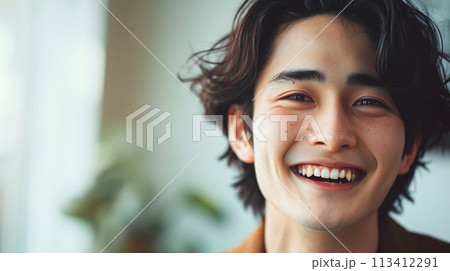 ナチュラルな笑顔のウルフカットの若い男性