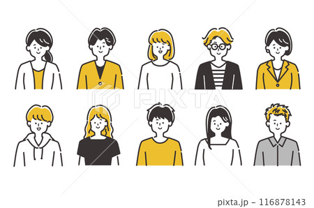アイコン用など若い男女の人物(上半身)イラスト素材セット