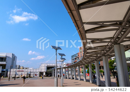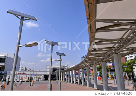 日本の横浜都市景観 地下鉄 センター南駅などを望む(駅前のソーラー・省エネ照明灯)