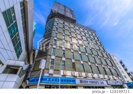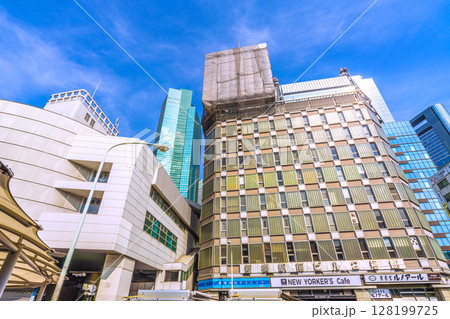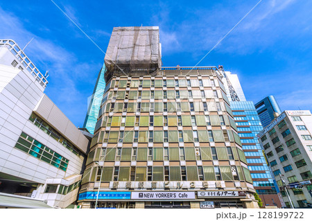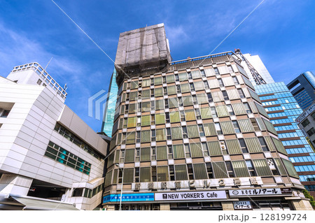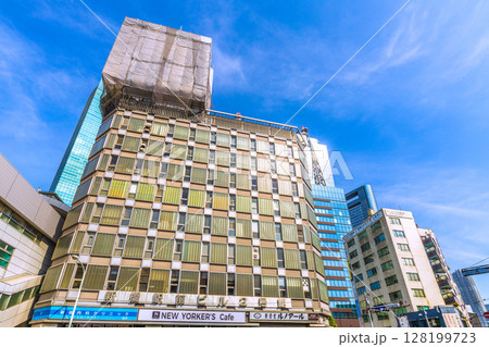 日本の東京都市景観 新橋駅前ビル2号館の屋上広告物解体工事などを望む
