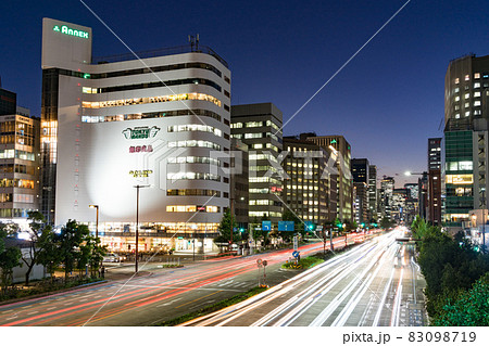 名古屋・栄・都市風景 セントラルブリッジからの眺め 桜通り 桜通久屋東交差点 夜景 交通イメージ