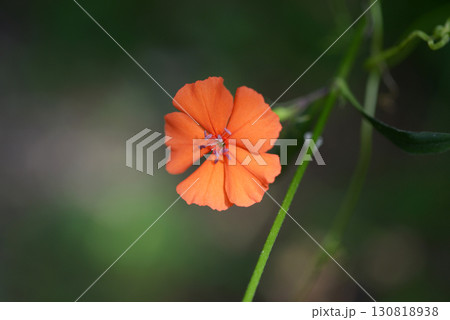 フシグロセンノウ 山野草 オレンジ色の花 緑の自然背景