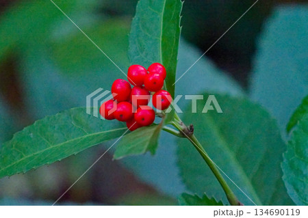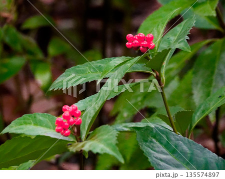 赤く美しい果実をつけるセンリョウ科センリョウ