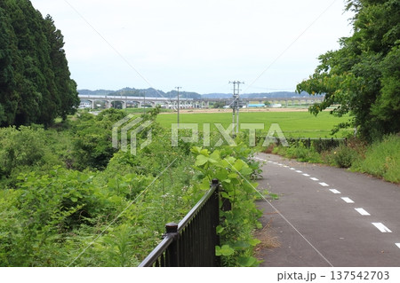 高台移設の仙石線旧線活用した遊歩道:奇跡の丘より陸前小野方面を望む
