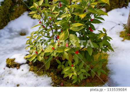 冬の化野念仏寺 残雪とセンリョウ 京都府京都市右京区