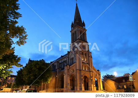 西ヨーロッパのフランス共和国 パリ近郊のイルドフランス地域圏アルジャントゥイユ サンドニ大聖堂夕景