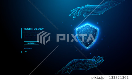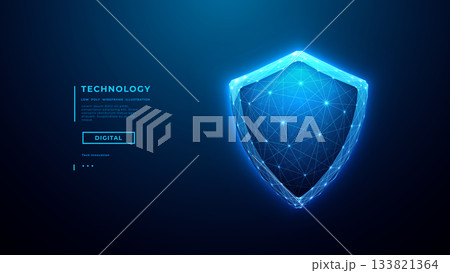 Cyber security concept. Digital shield icon with lock symbol glowing