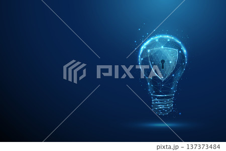 3d light bulb with shield and keyhole inside Idea protection, secure innovation, intellectual property defense, patent safety, protected invention, technology security concept.