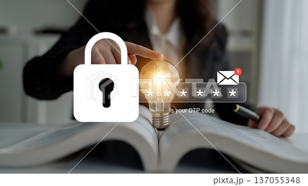 Security Concept with Lock and Light Bulb Representing OTP Code Verification for Online Transactions and Digital Safety Measures Gantry