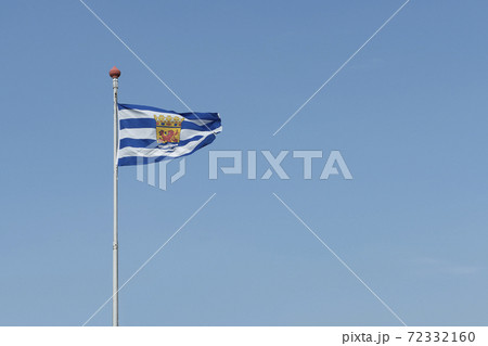 Blue and white waving flag of Zeeeland a province in the Netherlands