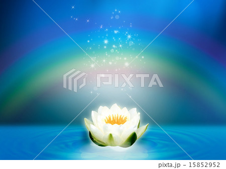 手を合わせる人物イラストと青い丸ボケイメージ_ワイド