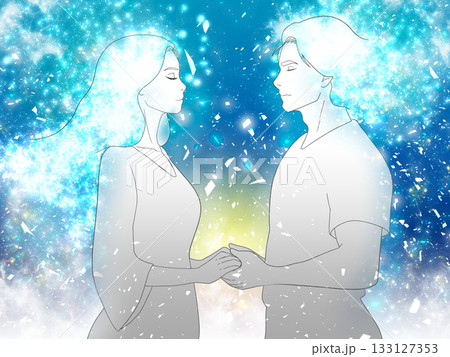 スピリチュアルなツインソウル・ツインレイやカップルをイメージしたイラスト
