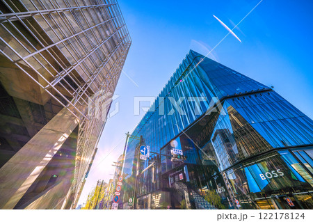 日本の東京都市景観 東京メトロ 銀座駅出入口やソニー通りなどを望む=10月27日