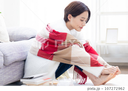 足の冷えを温める女性