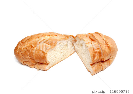 カットしたソフトタイプのフランスパン【白背景・切り抜き】