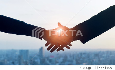 握手と笑顔の高齢患者を重ねた象徴的なヘルスケアイメージ