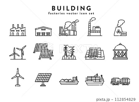 産業 物流 発電 ビジネス アイコン セット
