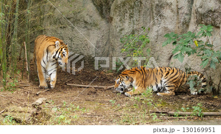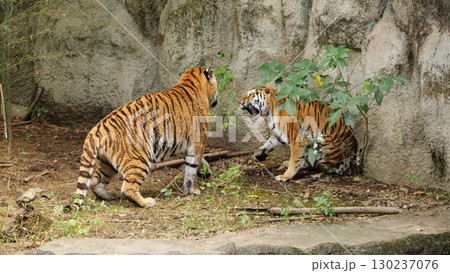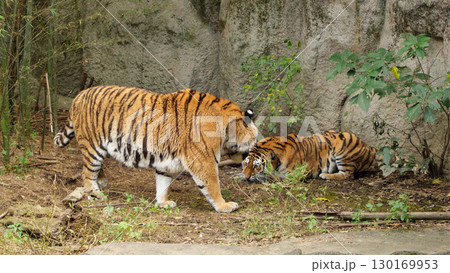 ずぶ濡れで階段をのぼるアムールトラ(オス)
