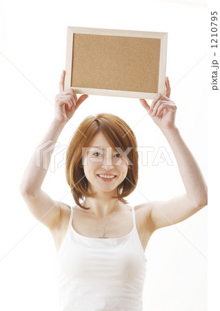 コルクボードを持つ女性