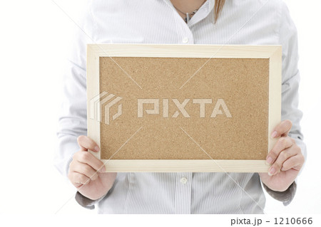 コルクボードを持つ女性