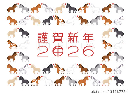 2026年の年賀状イラスト(向かい合うかわいい馬模様)