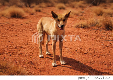 赤土の大地に佇むディンゴ オーストラリアの固有種