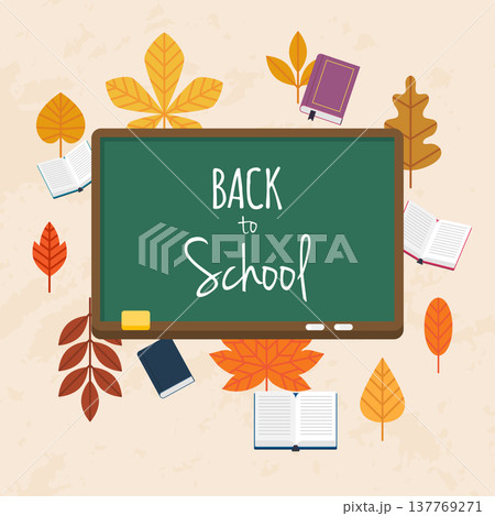 Back to school illustration with books and autumn leafs on the background. Flat design modern vector illustration concept.