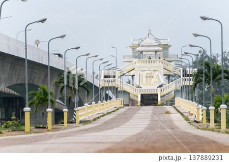 The historic Sarasin Bridge, turned into a pedestrian zone, next to the new bridge, and a view of the observation tower.It was the first bridge connecting the island to the mainland, opened in 1967