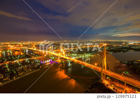 Bangkok City - Beautiful sunset view of Bhumibol Bridge,Thailand