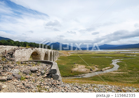 北海道/ 幻の橋といわれるコンクリートアーチ橋「タウシュベツ橋梁」(タウシュベツ川橋)からの風景