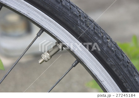 自転車の部位近写(英式バルブ・キャップ有)