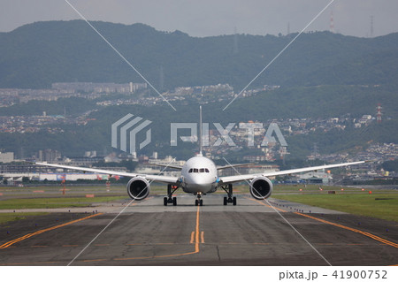 大阪空港の風景・タキシングする旅客機・ANA・ボーイング787