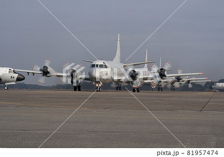 編隊で地上滑走する海上自衛隊のP-3Cオライオン哨戒機