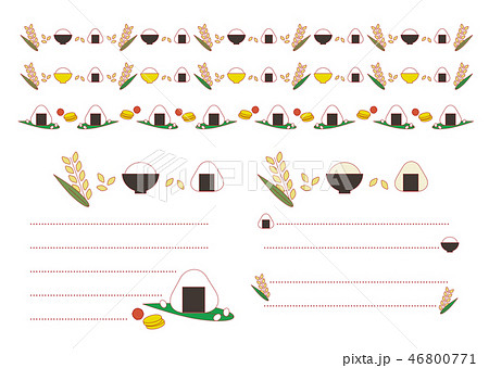ご飯(おにぎりとお茶碗)の飾り罫 赤ライン