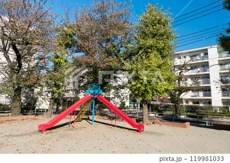 藤塚第三児童公園のすべり台 秋晴れの青空 東京都狛江市和泉本町