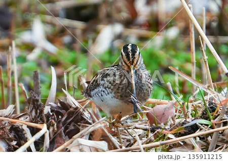 埼玉県川越市池辺 川越水上公園 修景池(ボート池)の水辺を歩くジシギ類のタシギ