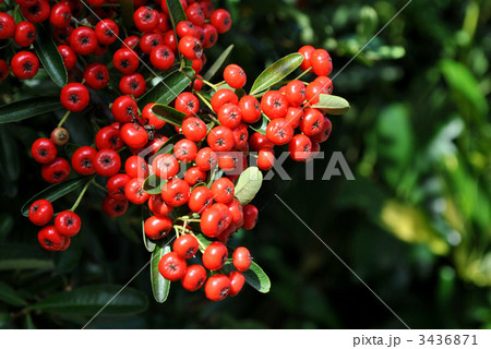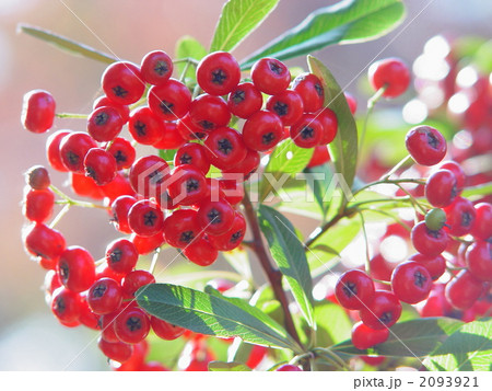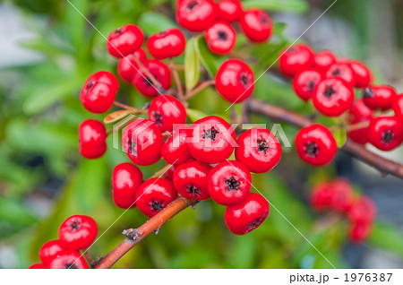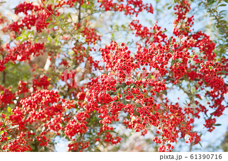 真っ赤な実がたわわに付いたバラ科の常緑低木ピラカンサス