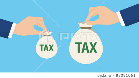 大きい税金の袋と小さい税金の袋のイラスト、ベクター