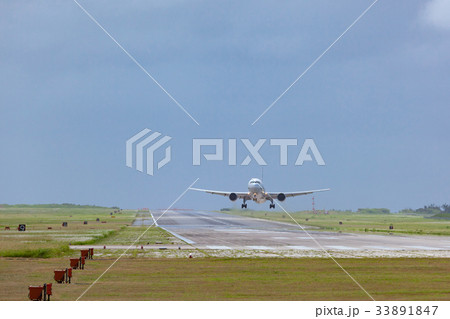 沖縄 宮古諸島 下地島空港 着陸寸前の飛行機
