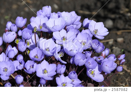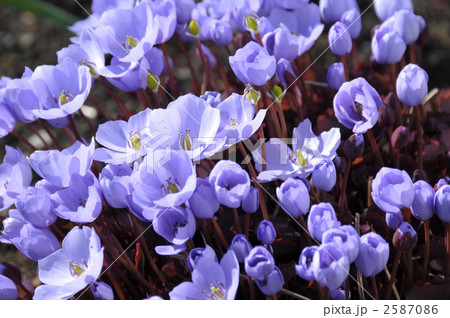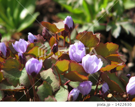 春の庭の紫色のかわいい花 タツタソウ