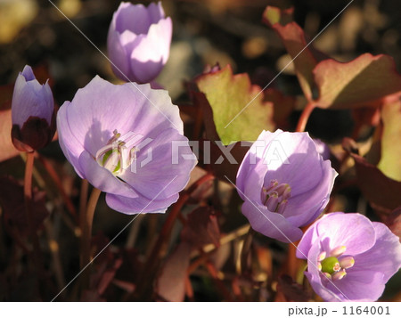 春の紫の花 タツタソウ