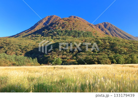 秋のタデ原湿原とくじゅう連山(大分県九重町)