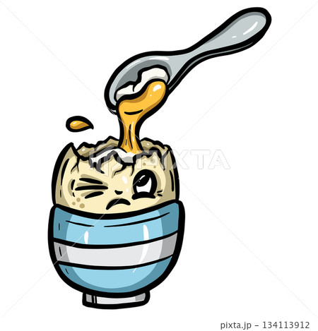 A cartoon egg with a green bowl and white frosting
