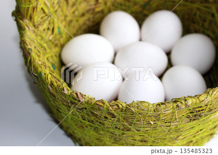 White Eggs In A Handmade Wicker Basket Detailed Stock Photo