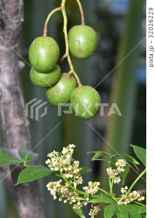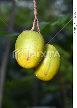 緑色の実がついた熱帯果実オトギリソウ科のタマゴノキ