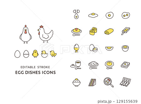 にわとりとヒヨコと卵料理のアイコンセット